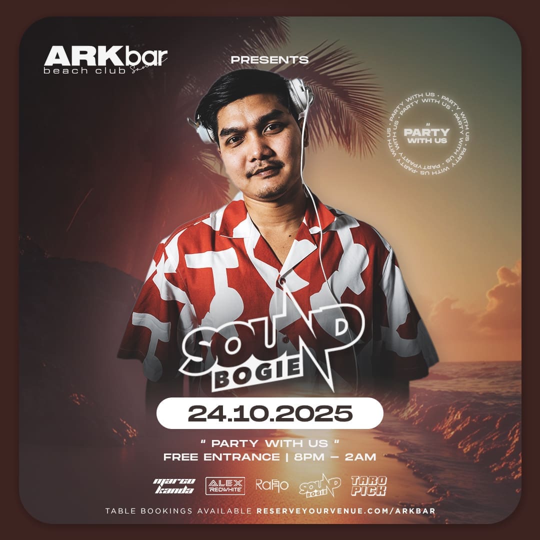 Experience the pulse of Koh Samui nightlife with Sound Bogie live at ARKbar Beach Club. From sunset into the early hours, join us for the island’s most electric beachfront party.