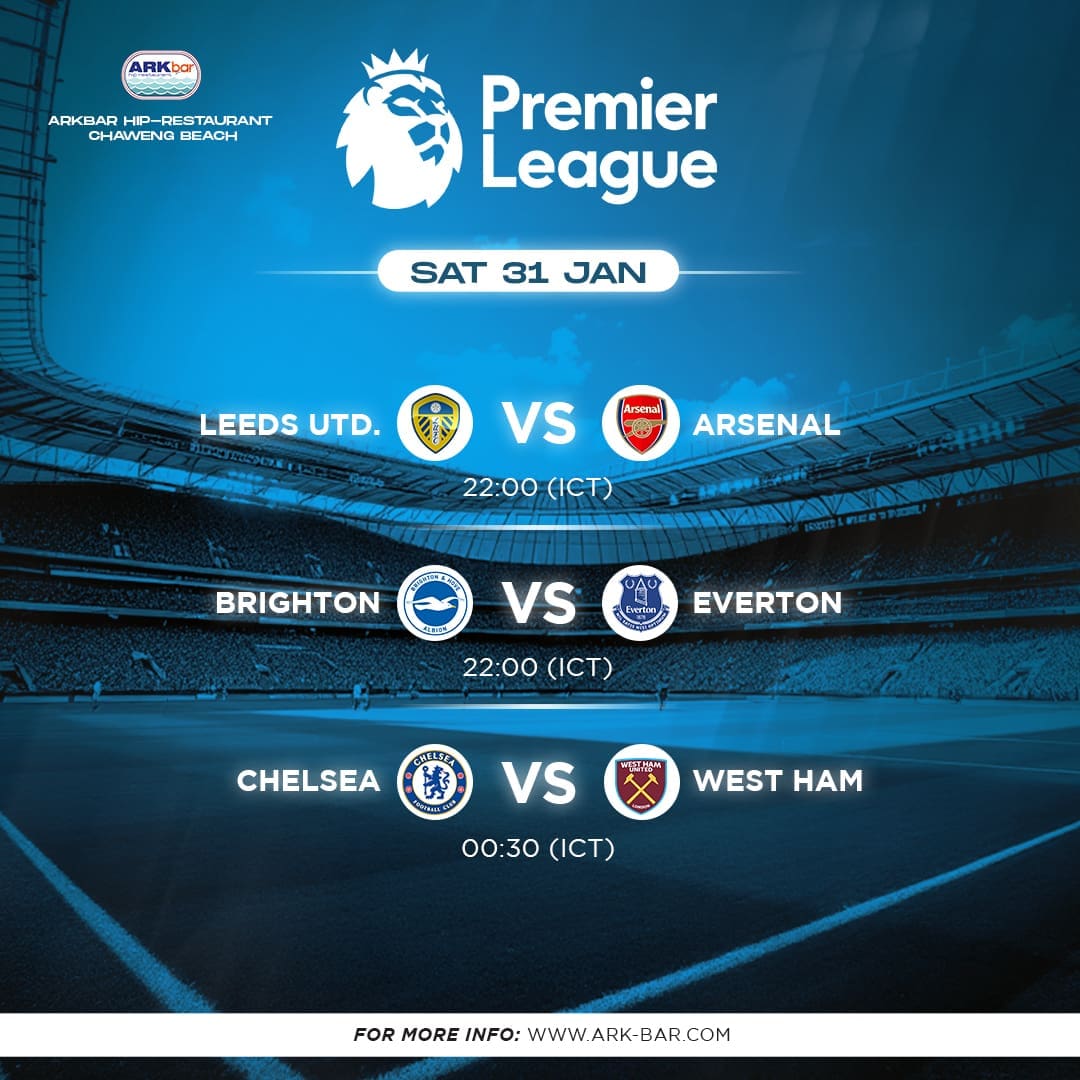 Premier League Live – Saturday, 21 February 2026 Join us at HIP Restaurant, ARKbar Beach Club, for live Premier League action on Saturday night. Location: HIP Restaurant, ARKbar – Chaweng BeachEntry: Free entryKick-off: 22:00 ICT Match Schedule:Chelsea vs BurnleyAston Villa vs Leeds UnitedBrentford vs Brighton Enjoy HD screens, full match sound, and a vibrant football […]