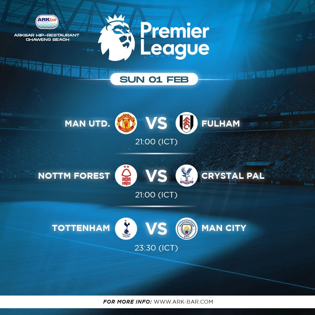 Premier League Live – Sunday, 22 February 2026 Join us at HIP Restaurant, ARKbar Beach Club, for live Premier League action on Sunday night. Location: HIP Restaurant, ARKbar – Chaweng BeachEntry: Free entryKick-off times (ICT): Tottenham vs Arsenal – 23:30Nottingham Forest vs Liverpool – 21:00Crystal Palace vs Wolves – 21:00 Enjoy HD screens, full match […]