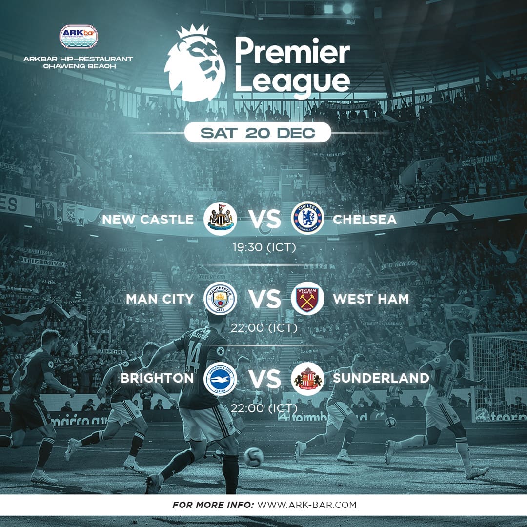 Catch all the Premier League action live in HD at HIP Restaurant, ARKbar on Chaweng Beach. Enjoy food, drinks, and an unbeatable matchday atmosphere.